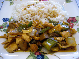 - Poner un wok al fuego y sofreir el pollo unos 5 minutos hasta dorarlo. Poner sal. Sacar a un plato.